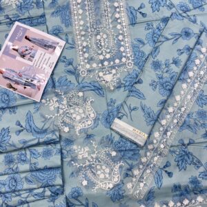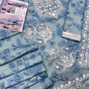 Linen embroidered patch work 3pcs unstitched