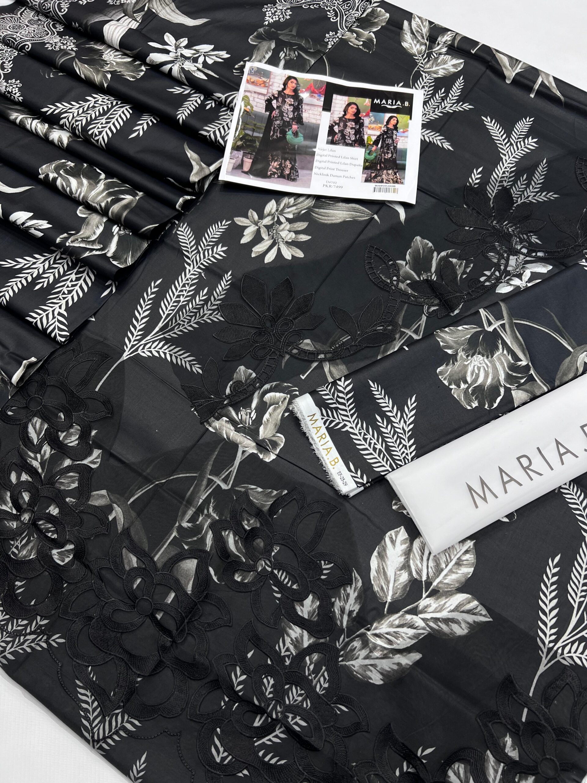 Linen embroidered patch work unstitched 3pc